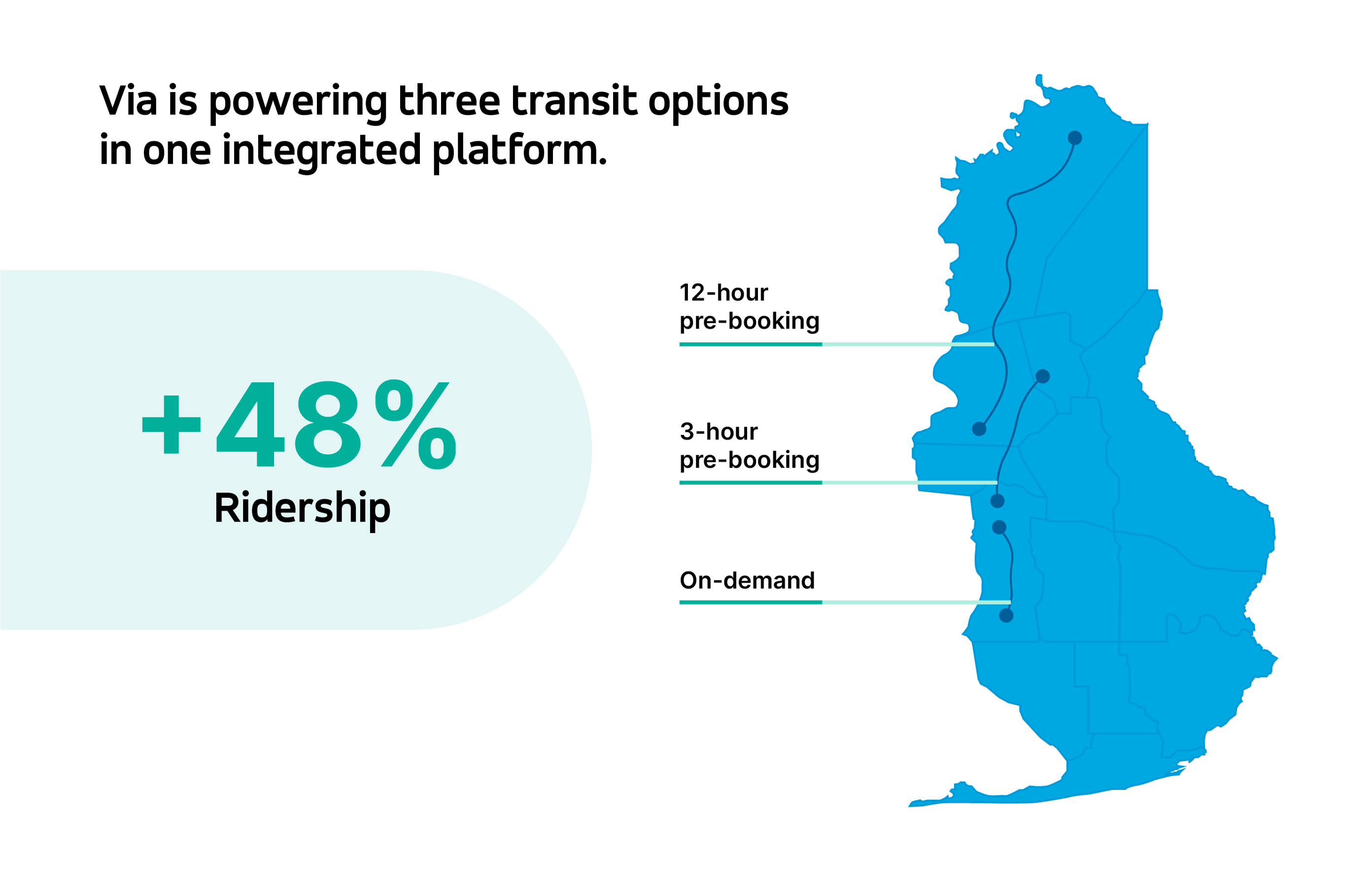 “With Via’s commingled service model and automated scheduling platform, we have been able to serve more rides with limited supply, while ensuring that we deliver reliable, on-time trips to riders.”