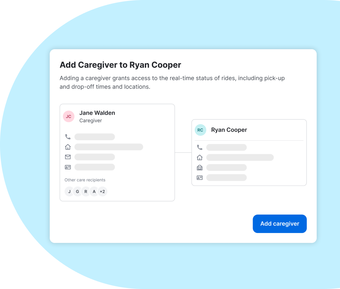 Your agents can connect rider profiles to trusted caregivers or facilities, right from the Via Operations Center. This makes sure everyone gets the info they need — no need track this information by hand!