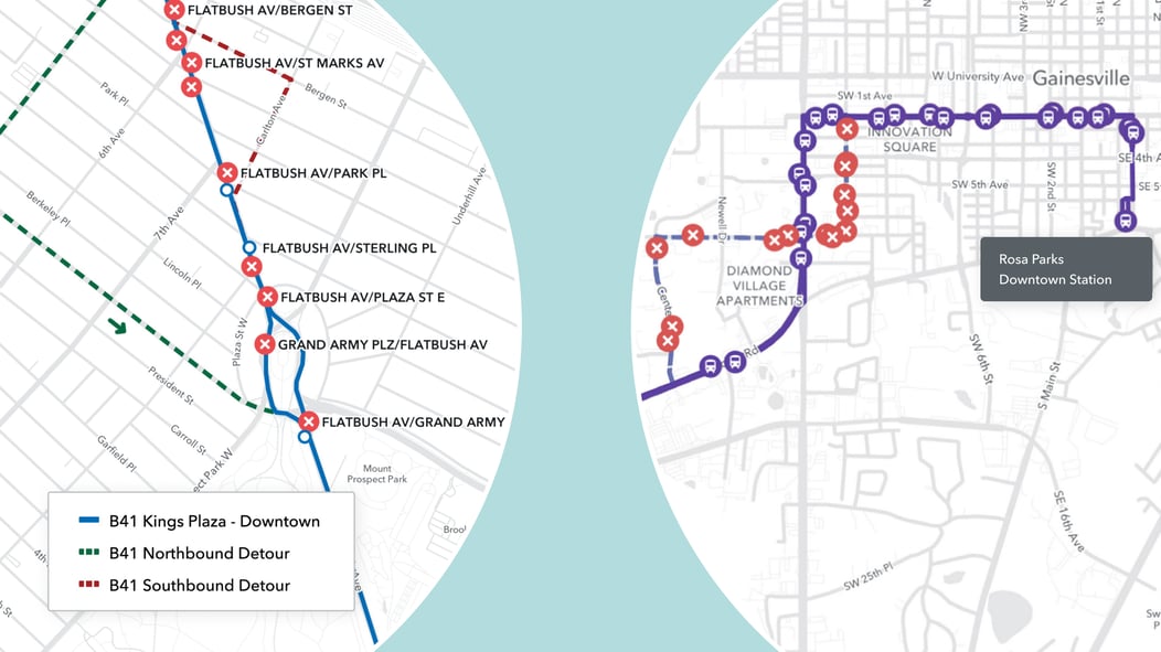 Agencies like New York MTA and Go-RTS (Gainesville, FL) use Presentation Studio to communicate detours to both riders and drivers alike.