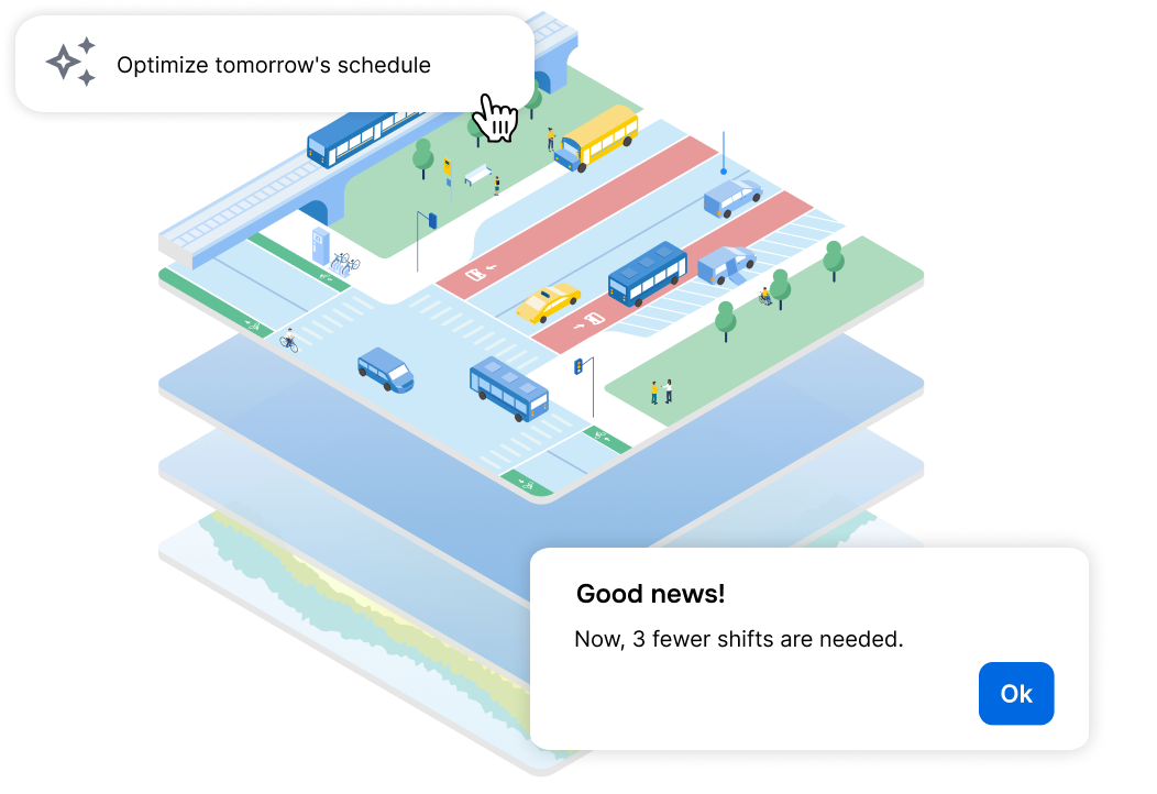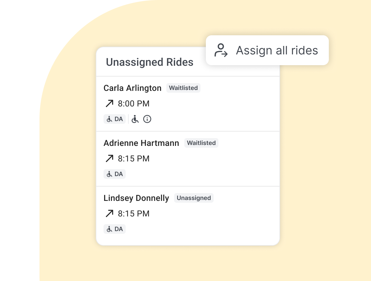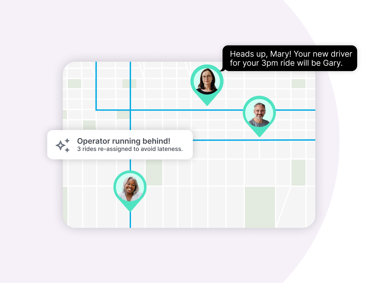 Boost efficiency, punctuality, and rider satisfaction in one fell swoop. Our industry-leading scheduling engine continuously optimizes routes so you outperform on every metric that matters.