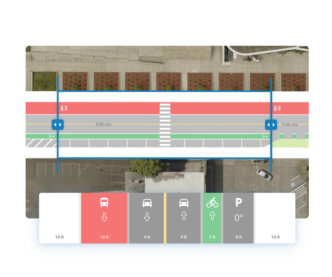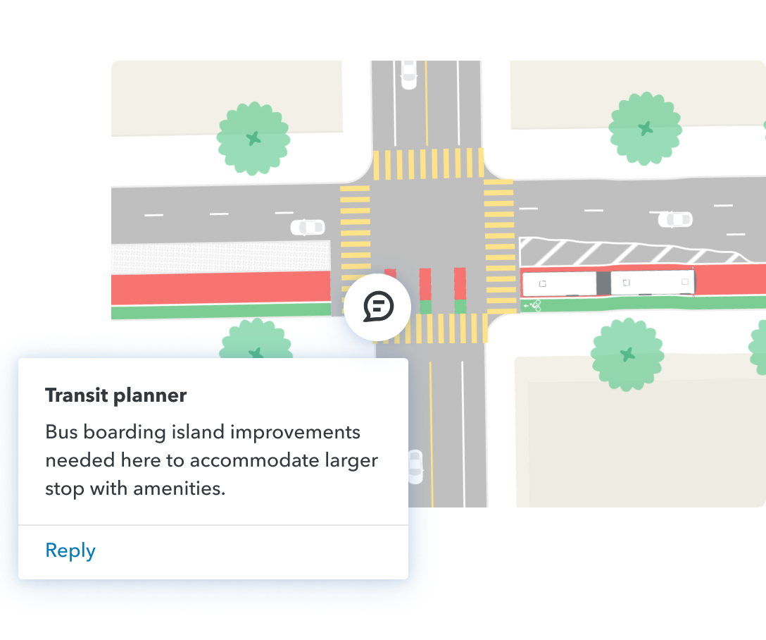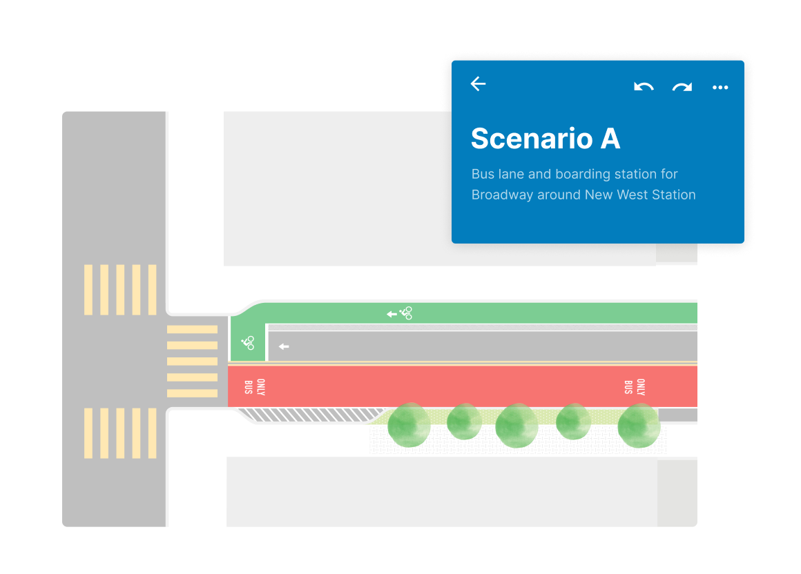 Transit moves more people in less space than any other mode. Quickly create conceptual plans for street-level changes to improve bus speed and reliability, and collaborate seamlessly with other teams.