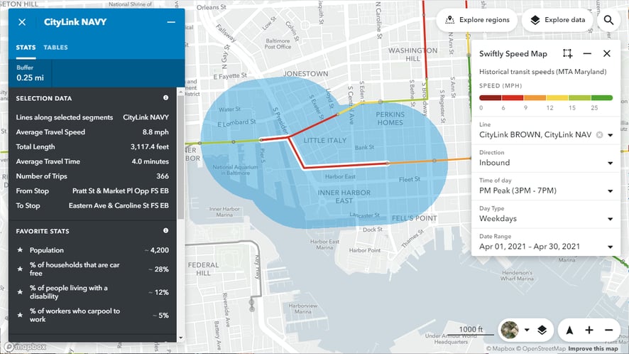 This partnership means you can now visualize Swiftly’s best-in-class historical speed and dwell time data in Remix’s best-in-class planning tool. Swiftly, which works with 100+ agencies, focuses on providing scalable data solutions for fixed-route bus networks, while Remix’s platform empowers thousands of planners to collaborate across multiple stakeholders with the end goal of creating holistic transportation networks. Read more about Swiftly and Remix's partnership as well as how we are working with the Maryland Transportation Administration here