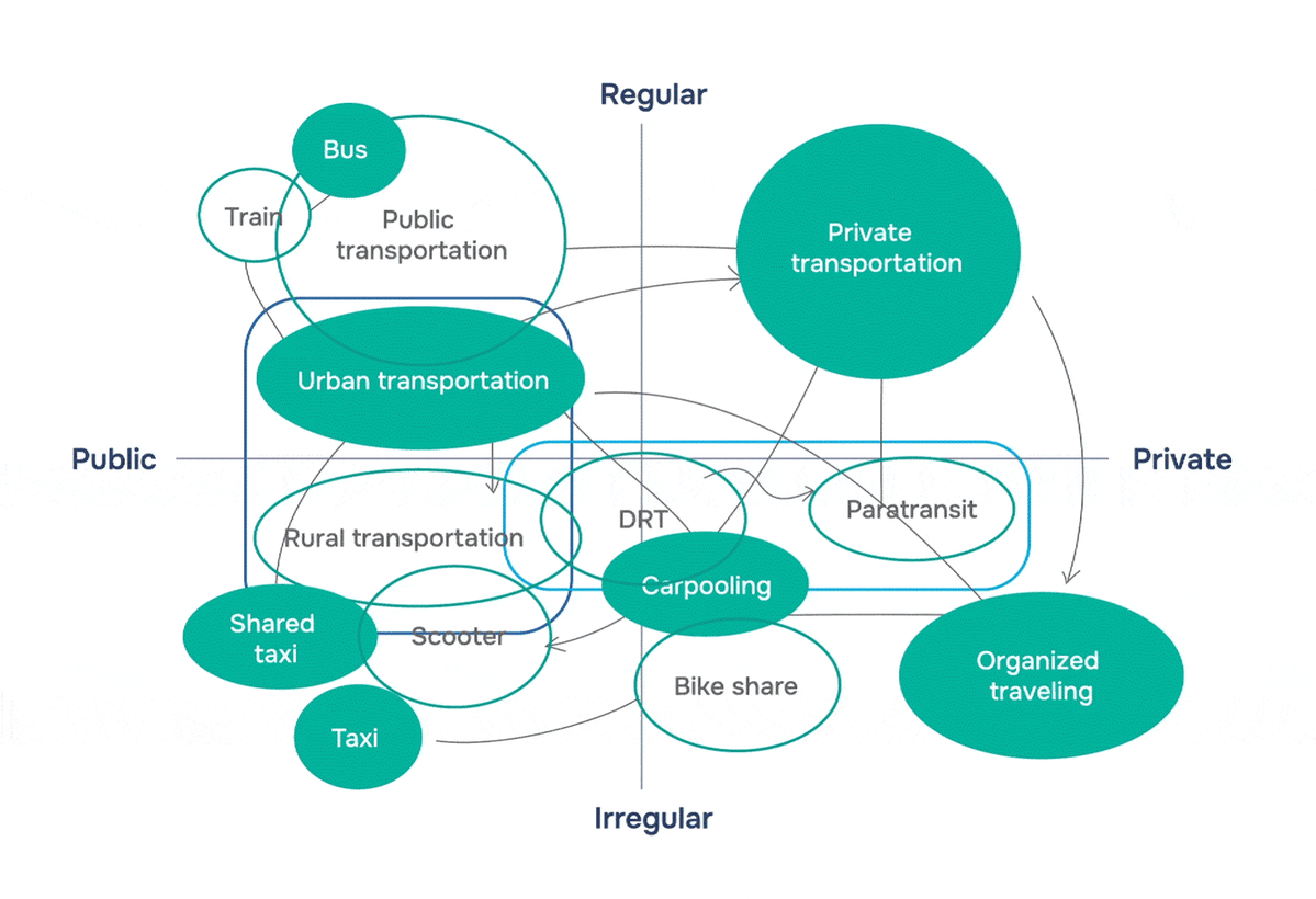 Flexible transit. On-demand transportation. Demand-responsive transit. Mobility on-demand. App-enabled private multi-passenger transportation service. Microtransit. (Macrotransit?)