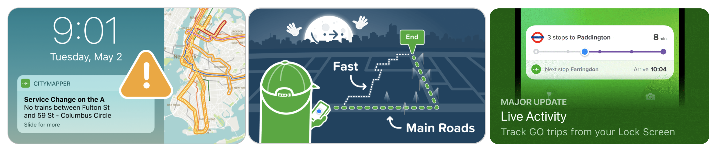 Citymapper’s journey-planning was built to make planning travel intuitive. The app is constantly learning from passenger choices and responding to real road and transport changes to offer optimal journey proposals and routing in an easy to use and extremely detailed experience. The Citymapper team also regularly releases both groundbreaking features and small details that make the app feel personal and delightful to use. Features like night safe walking options, lock screen navigation, and service disruption notifications have helped grow a deeply loyal user base who aren’t shy about bringing their friends on board.